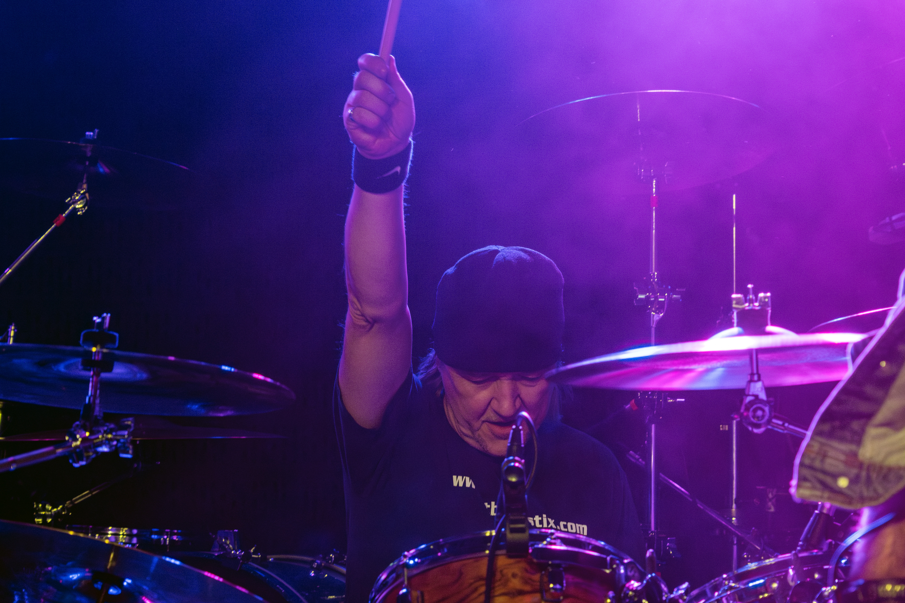 The punch and thrust of the drums makes your bowels squirm with delight! The lumberjackesque drummer does his best to be environmentally friendly despite the amount of drumsticks he goes through.